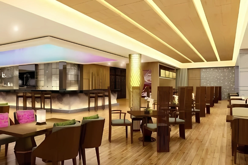 An elegant all-day dining venue, Safara offers an international buffet and à la carte selections complemented by live cooking stations and interactive culinary displays. Guests can indulge in a lively yet refined atmosphere surrounded by lush landscaped gardens, and the outdoor pool. The restaurant also features a Greenery Terrace, a serene open-air extension ideal for relaxed alfresco dining, and a Private Area perfect for intimate gatherings or exclusive events. Blending casual comfort with understated elegance, Safara is the perfect setting for breakfast, lunch, or a leisurely evening meal.